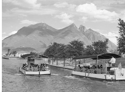 Un romántico canal navegable que serpentea entre fuentes y puentes, conectando el corazón histórico con el Parque Fundidora.
